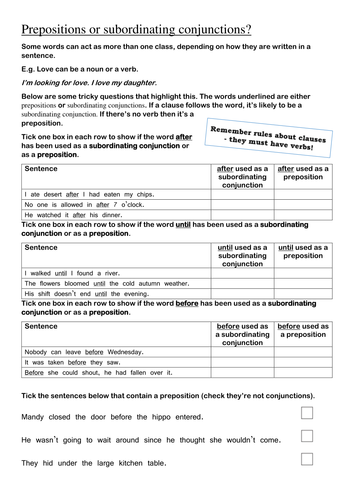 Ks2 Prepositions Or Subordinating Conjunctions Teaching Resources